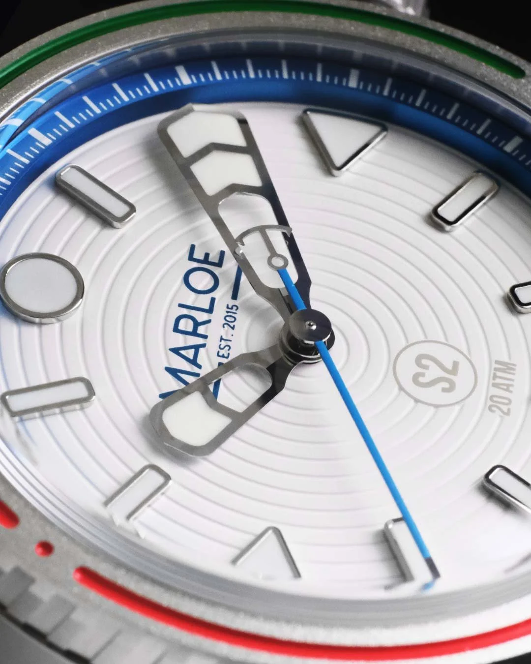 New hands adorn the Sceptre S2 with a hairline seconds hand printed with the same blue as the chapter ring. Outwards is the new bezel design featuring a dual-colour paint fill - red for port, green for starboard. This is the sailor’s Sceptre S2.